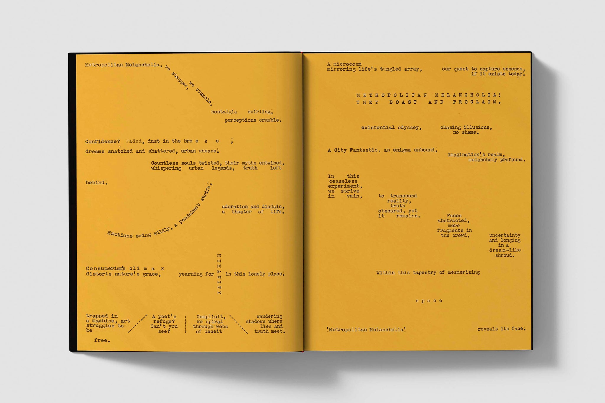 Surreal and painterly, their abstract images envelop city-dwellers in architectural compositions of light and shadow; cinematic fragments converge with splintered sketches of the everyday. More uneasy back-and-forth than one-sided love letter, Metropolitan Melancholia unties two poetic dialogues with the city.